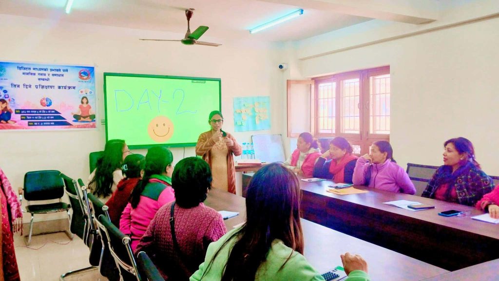 Inaugural ceremony and training program on the first day of a 3-day program on the impact of digital media on mental health and solutions, organized by Kathmandu Metropolitan City Ward No. 20 and the Housewives’ Association Nepal.